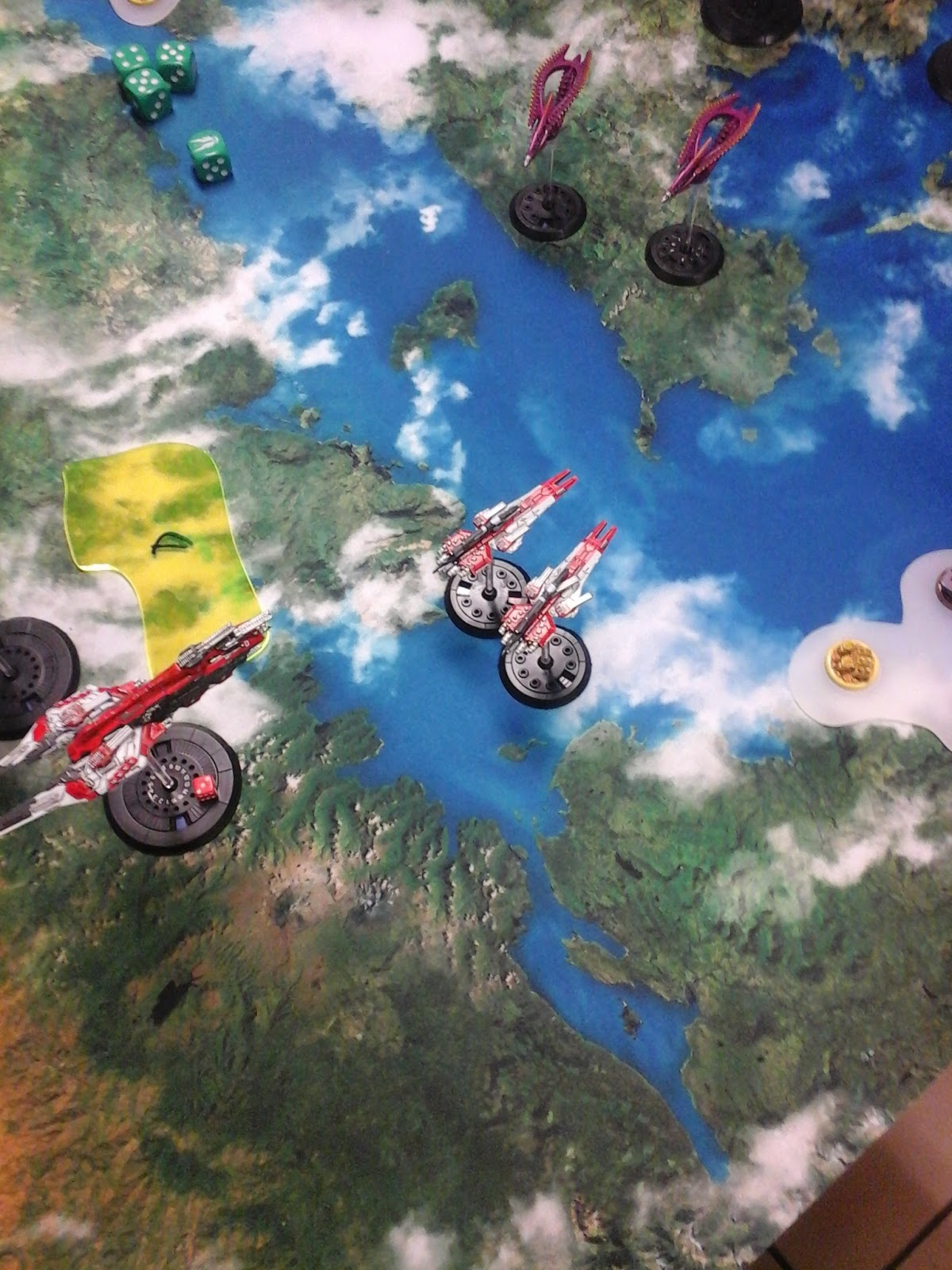 Vu l'échelle du jeu, les figurines sont des abstraction sur la zone de jeu. La surface de jeu représente une région de la taille de la France ou d Texas, aussi un vaisseau de 1km de long (comme un Battleship) serait minuscule à cette échelle. C'est la raison pour laquelle toutes les distances et les lignes de tir sont mesurées depuis la tige au centre du socle. De plus il n'y a pas de collisions entre les vaisseaux et les différents vaisseaux ne gênent pas les lignes de tir. Des règles d'éperonnage ont cependant été ajoutée, mais ne sont utilisable qu'en tout dernier recours, puisque cette manoeuvre entraîne la destruction certaine du vaisseau qui l'emploie, quelles que soient les résultats.